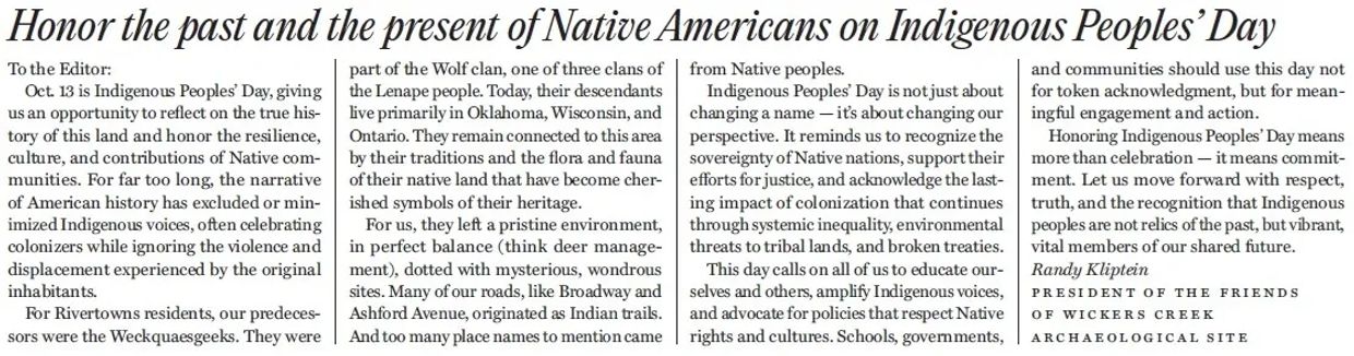 Download PDFA special message from the descendants of the first inhabitants of Wysquaqua (Dobbs Ferry).